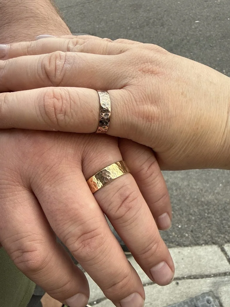 Forge the ring back into shape and give texture for design